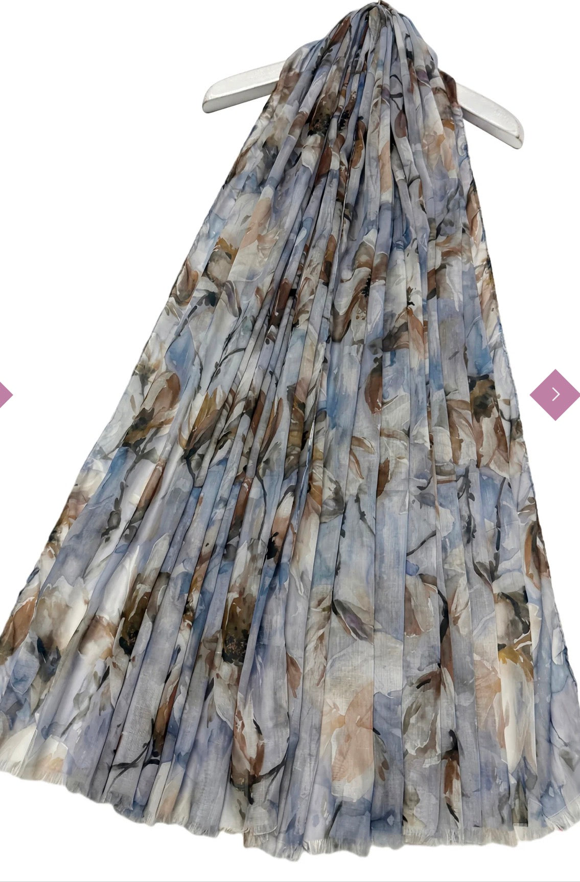 Coffee Watercolour Magnolia Flower Print Frayed Scarf