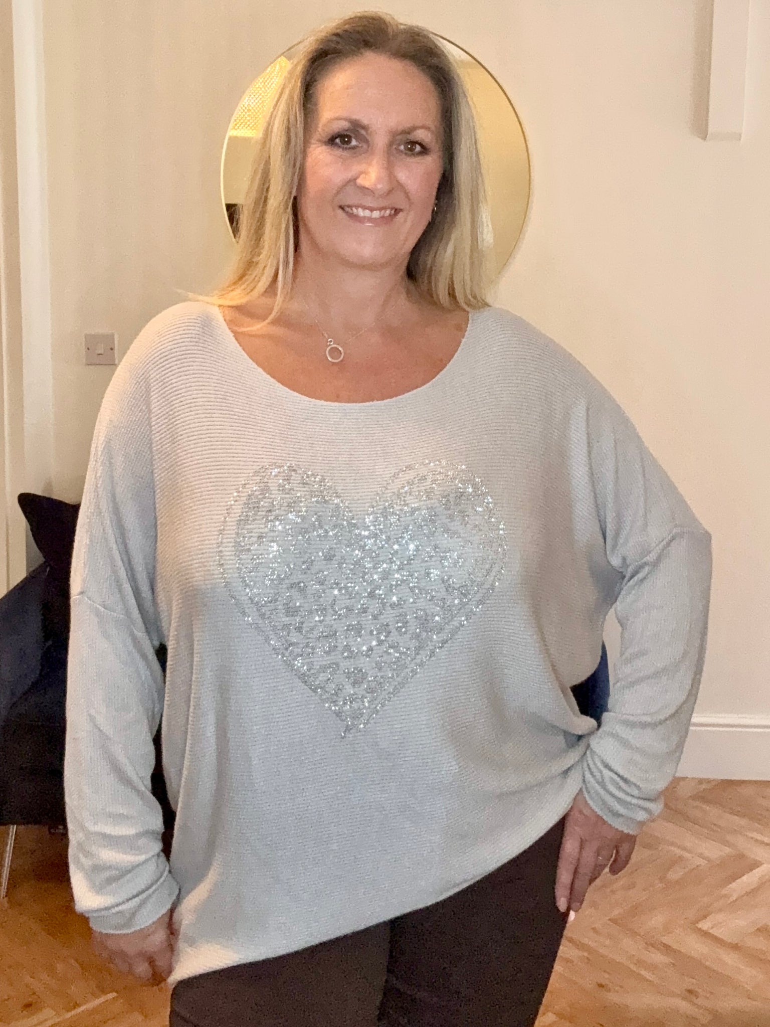 Add effortless glamour to your wardrobe with this lightweight knit top, featuring a dazzling crystal diamanté heart design on the front. Perfect for day-to-night wear, this stylish piece combines comfort with eye-catching sparkle.