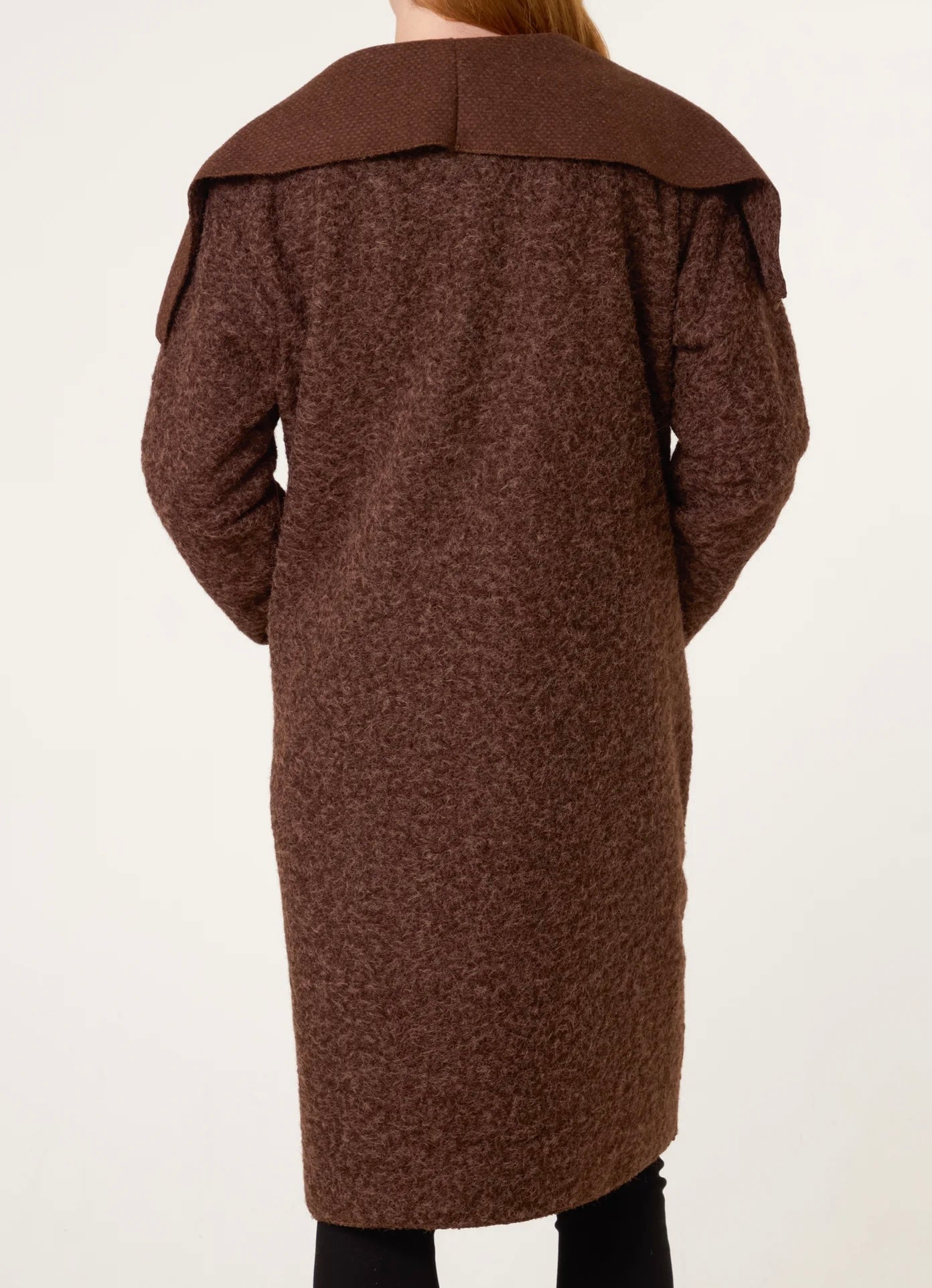 Chocolate BRUSHED WOOL LIKE WATERFALL COAT
