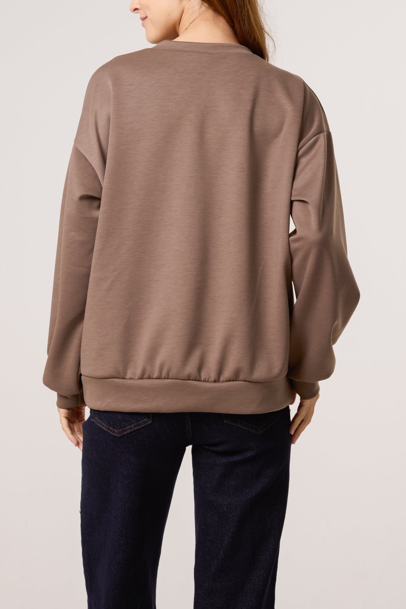 Mocha EMBROIDERED FLOWER SOFT TOUCH SWEATSHIRT